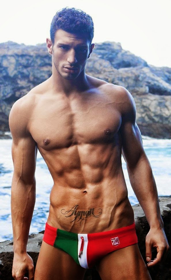 - Só gatos gostosos, usando sungas coloridas.